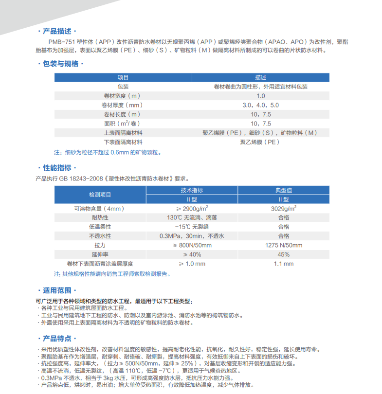 PMB-751 塑性体(APP)改性沥青防水卷材