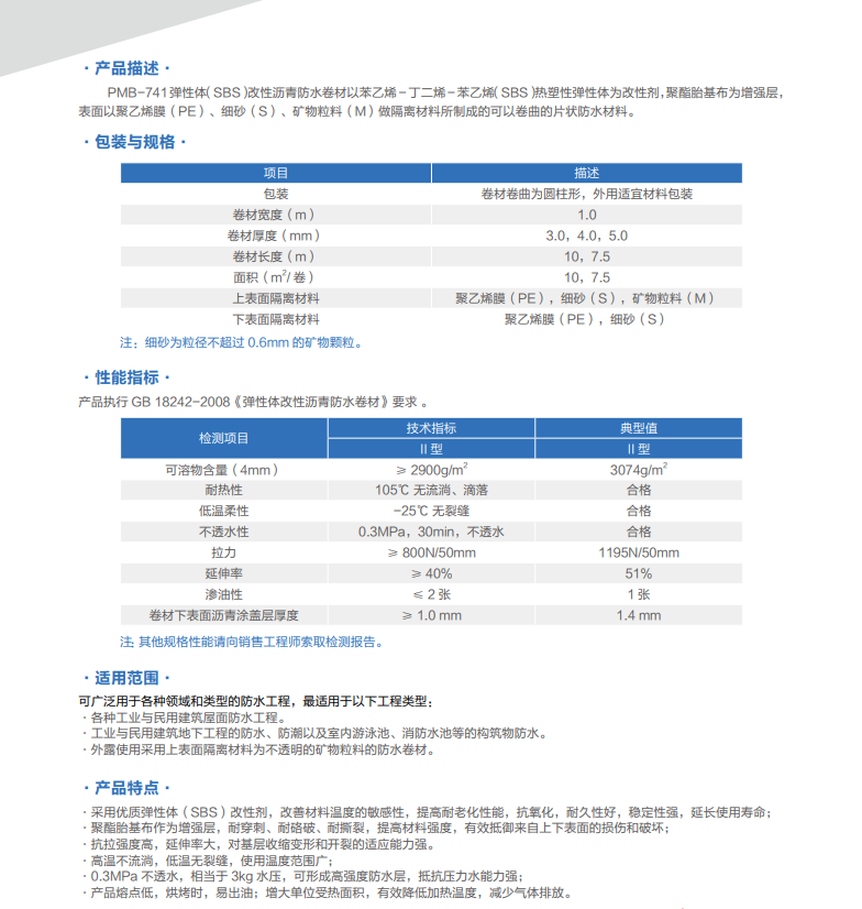 PMB-741 弹性体(SBS)改性沥青防水卷材